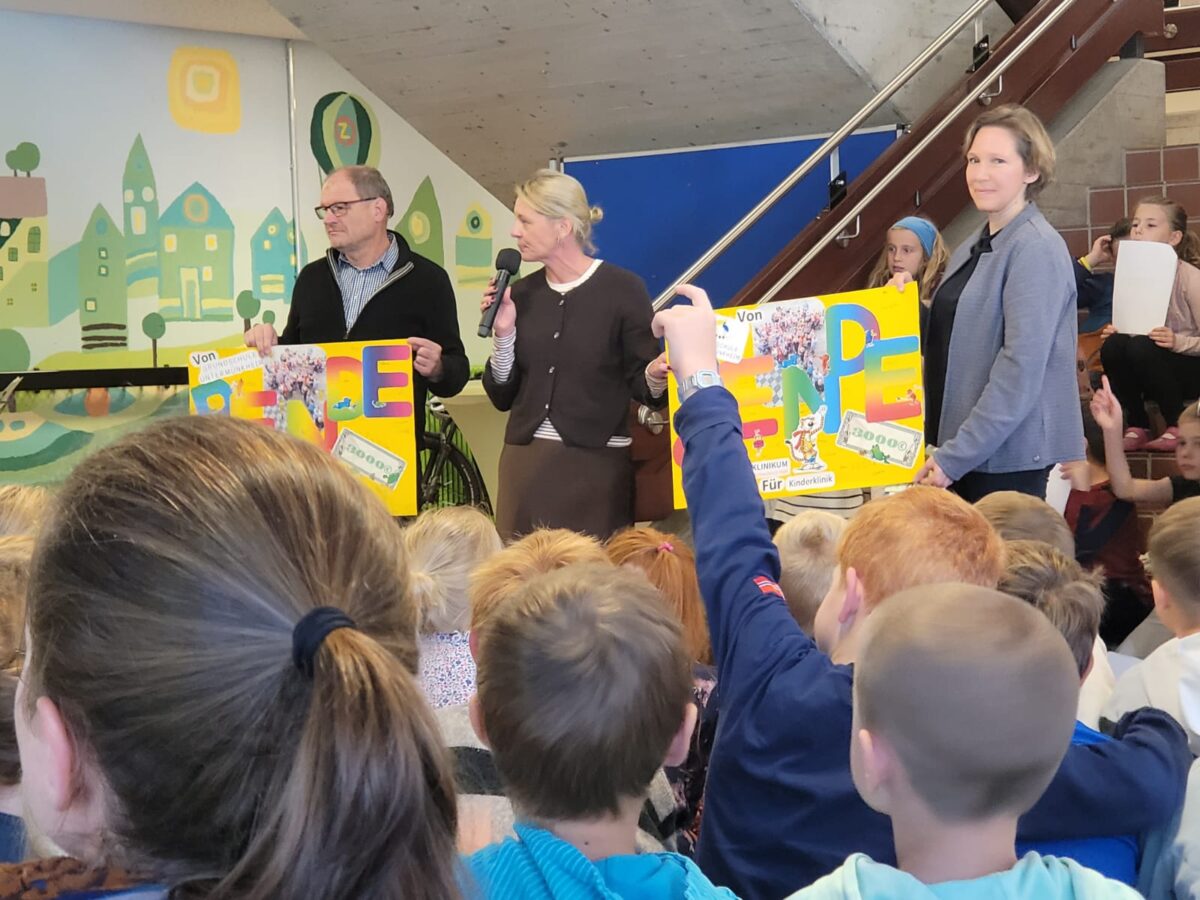 Der andere Teil wurde an den Förderverein der Klinik für Kinder und Jugendliche des Diak Klinikums übergeben. Der Verein unterstützt tatkräftig mit vielen tollen Projekten die Jüngsten in unserer Gesellschaft – besonders diejenigen, denen es im Moment nicht so gut geht. Vielen Dank an Isabell Rathgeb, die extra zu unserer ersten Schulversammlung an unsere Grundschule gekommen ist und den Spendenscheck entgegengenommen hat.